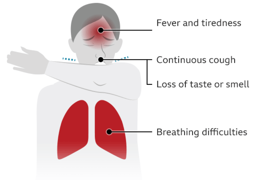 Those infected with SARS-CoV-2 exhibit the following symptoms: