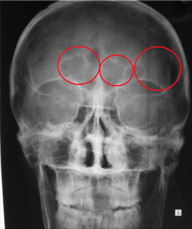 The proliferation of plasma cells stimulates growth factors released, this may impact nearby osteoclast (cells that degrade bone to initiate bone remodelling) which in turn suppresses osteoblast inhibiting bone formation, this leads to lytic or osteolytic lesions. These lesions appear as small holes in the bone which can lead to possible bone fractures. This also causes more calcium to be released and the patient to present high calcium levels. Most of the skeleton is impacted including the long bones.